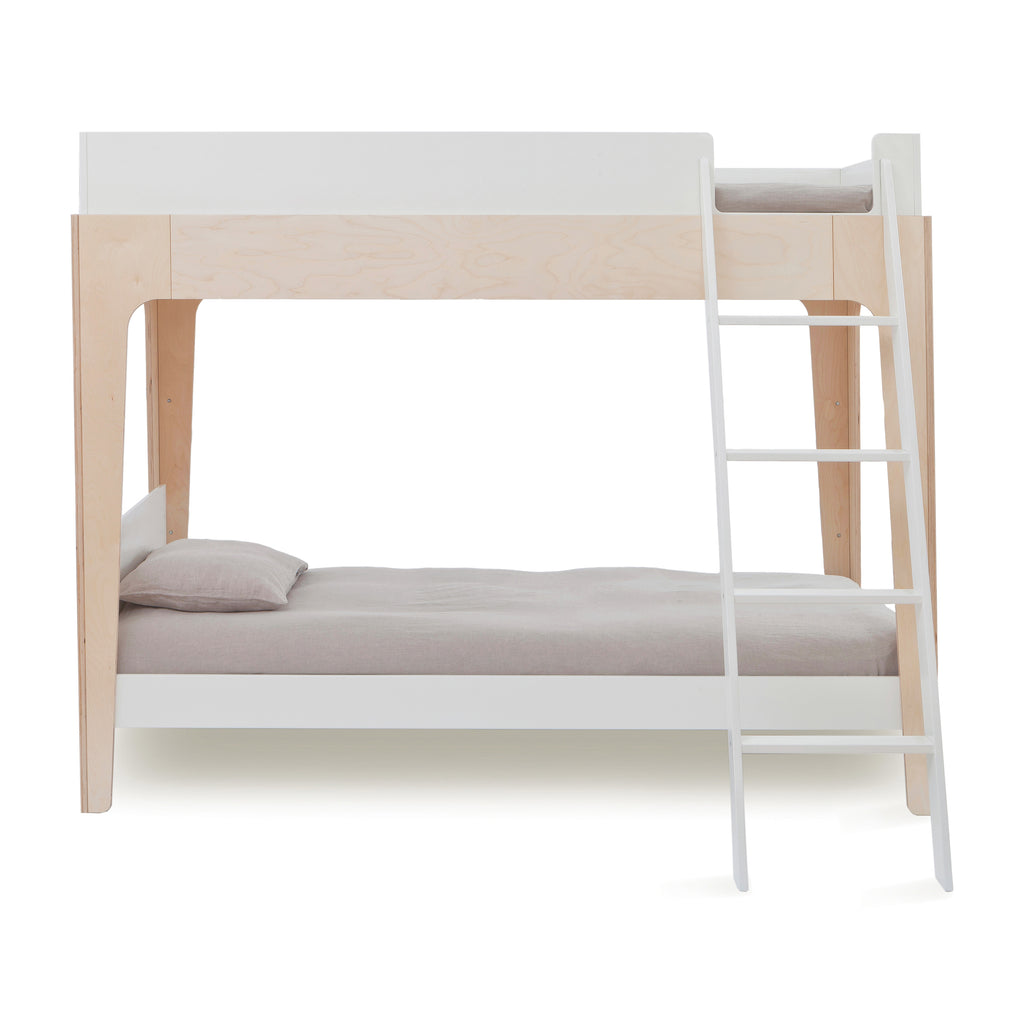 Ready to bring your child's sleep space to new heights, the Perch Twin Bunk Bed from Oeuf wows with its space-saving floor plan and practical good looks. Equipped with a kid-friendly ladder and sturdy safety wall, kids (and parents) sleep tight all night long.