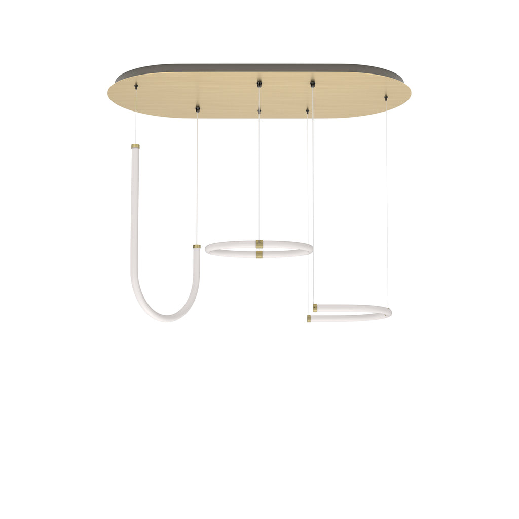 A suspended design ready to make incredible impact in a variety of interior spaces, the Unseen Multi Pendant Light from Petite Friture is your answer to unexpected beauty. Comprised of multiple modular curved LED-powered light tubes that appear to float in space, this pendant is proof of technical mastery and sublime simplicity. Suspended by a powder-coated steel ceiling plate finished in brass, this pendant is ready to bring dramatic flair to your favorite dining and living spaces. Always the star of the show, this pendant can easily be accented by recessed lighting or small sconces to create a lighting display worthy of the finest interiors.