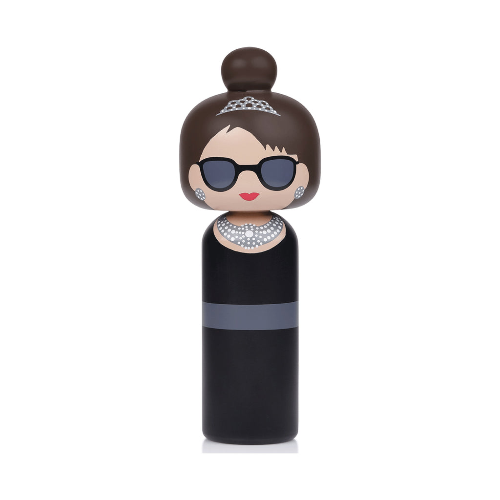Painted in her iconic outfit from Breakfast at Tiffany's, the Audrey Kokeshi Doll from Lucie Kaas showcases screen legend Audrey Hepburn all decked out in her finest sunnies and diamonds. Crafted from superba wood, this doll is handpainted offering a beautiful rendering of a fashion and film icon. Ideal for the film or fashion buff in your life, this doll makes a great birthday or holiday gift and looks great displayed on a high shelf or on top of a console table or coffee table.