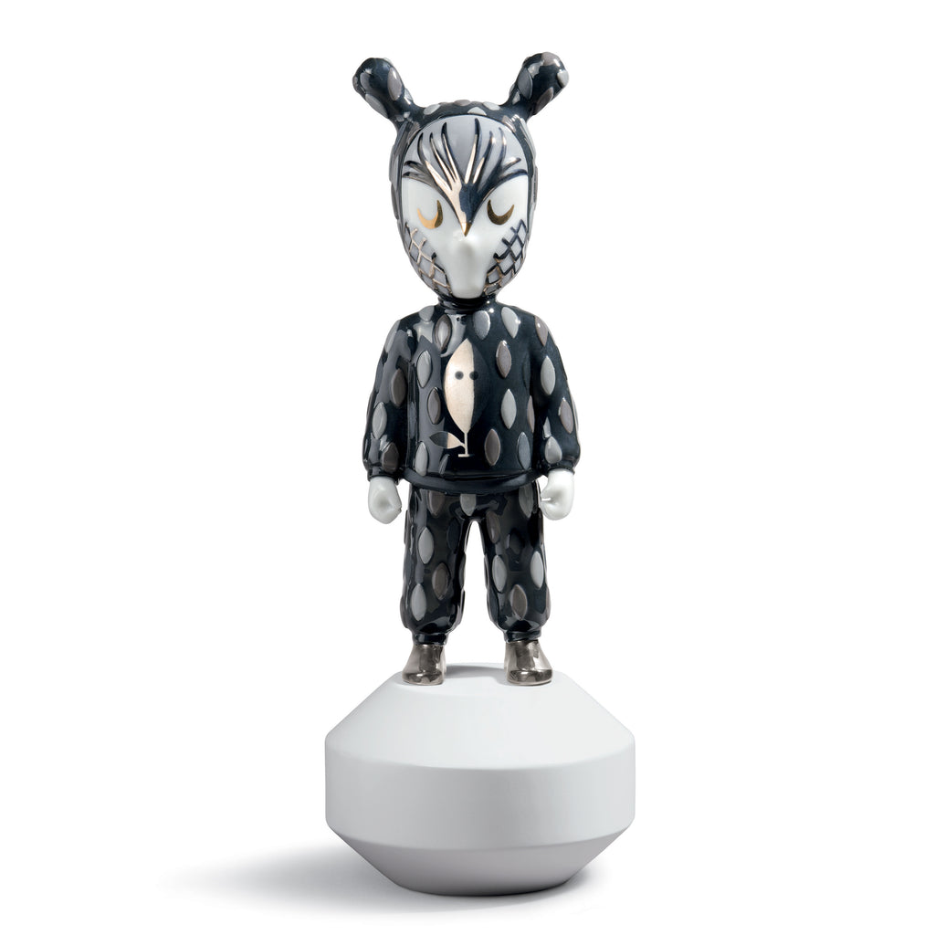Hand-crafted from glazed porcelain, The Guest by Rolito is the artist's contribution to The Guest collection from Lladro Atelier, a series inviting world-renowed artists to customize an inconic figurine. With textural elements finished in white and black with silver accents, this figurine combines monochromatic minimalism with three-dimensional artistry. Beautiful as a stand-alone conversation piece or parterened with other porcelain designs, this piece can find a home in any contemporary space looking to bring a unique touch to its decor.