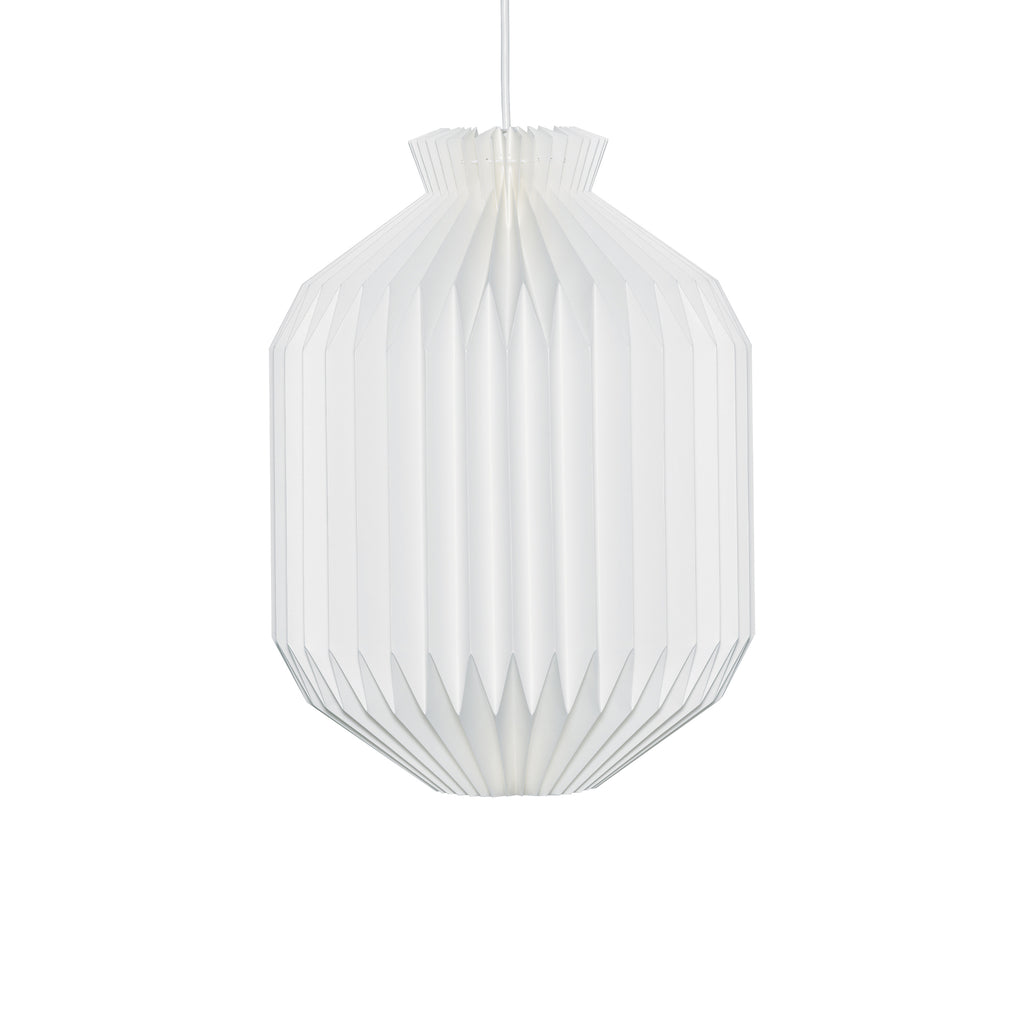The oval shape gives the lamp a more sedate expression, closely allied to traditional Japanese paper lamps. The enclosed shape makes it suitable for hanging from a high ceiling.