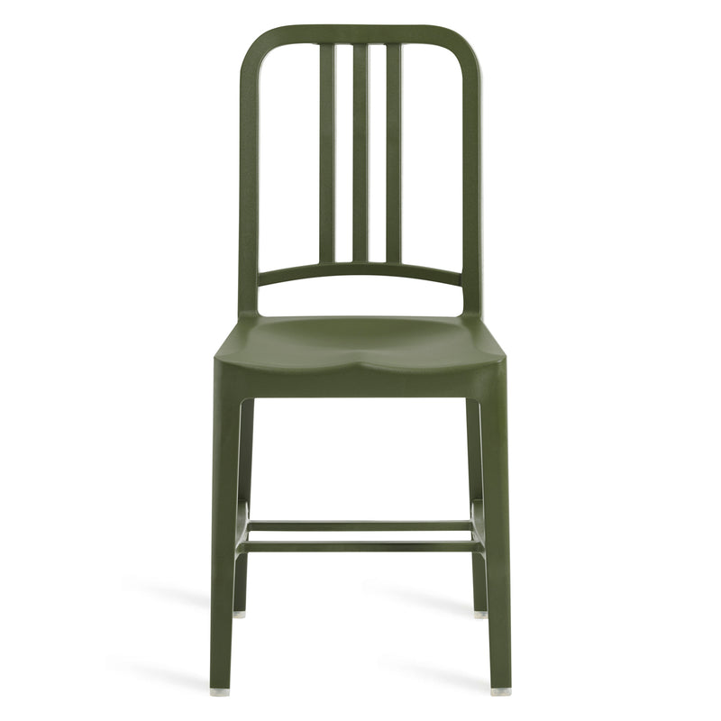 Originally designed for use on WWII submarines, today's 111 Navy Chair is an innovative collaboration between Coca-Cola and Emeco, Solving an environmental problem of the discarding of plastic soda bottles that pollute our environment, 111 discarded PET bottles are utilized towards the creation of the Navy Chair, saving millions of Coca-Cola bottles from the landfill each year. Crafted right here in the United States and built to last a lifetime, the simple silhouette and variety of colorful finishes let you effortlessly match to fit your interior needs.