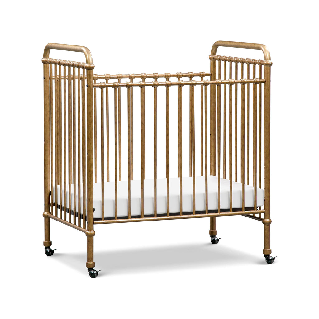 Create the perfect cozy space for your little one with the Abigail 3-in-1 Convertible Mini Crib from Namesake. Its compact design is ideal for small spaces and can be easily moved with its removable casters. Made with high-quality materials and vintage-inspired metal casting, this crib will last from infancy to toddlerhood. When the time comes, upgrade to a toddler bed with the included conversion kit for added independence and safety for your little one.