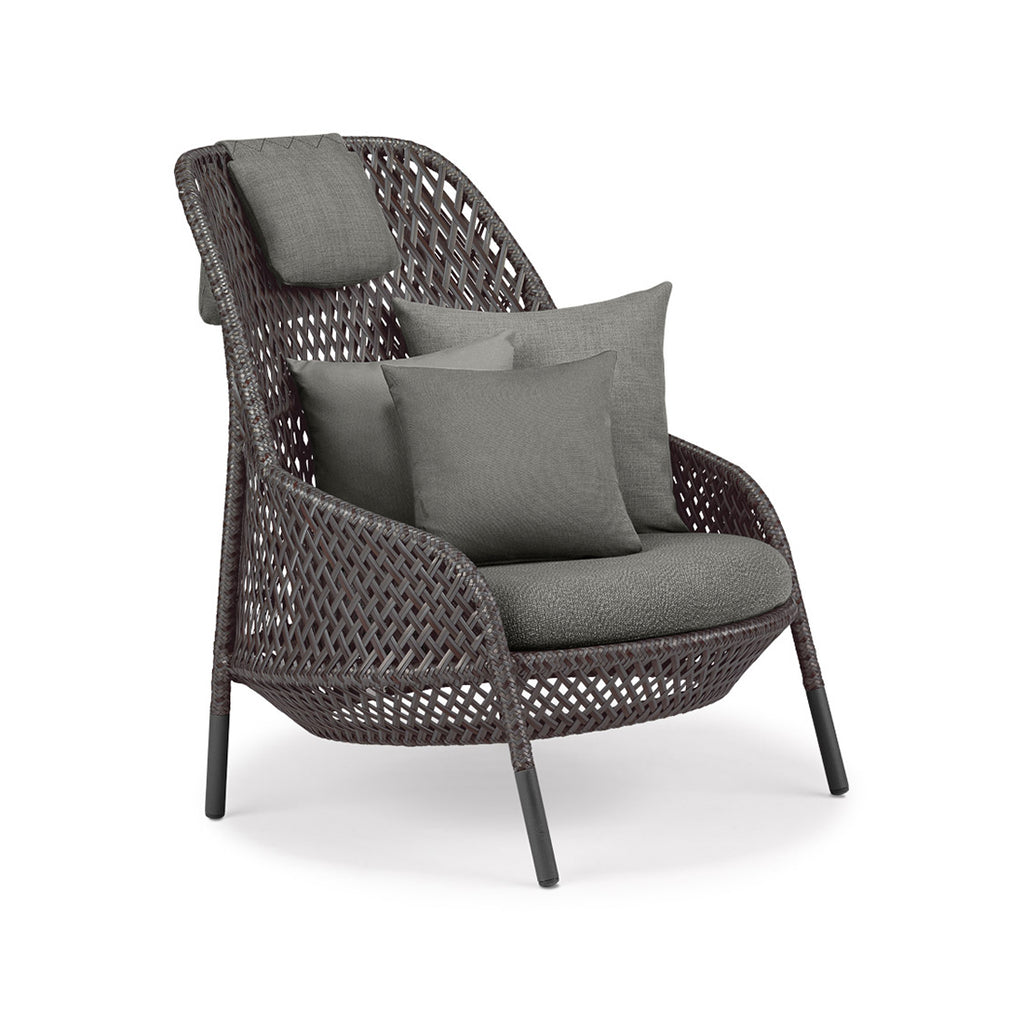 Experience a stunning blend of luxury and comfort with the AHNDA Wing Chair from Dedon. Featuring an innovative "transparent upholstery" handwoven of weatherproof synthetic fiber, this chair is as stylish as it is durable and comfortable. Perfect for both conversation and relaxation, this gorgeous chair will be a cherished part of your outdoor space.