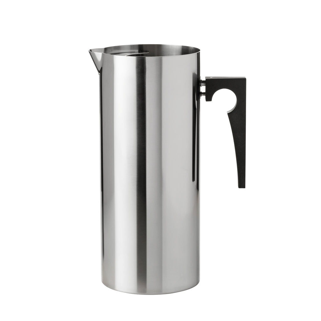 Designed by Arne Jacobsen for his iconic Cylinda collection, the AJ Jug With Icelip from Stelton is a sleek and functional addition to your dining room table or outdoor space. Featuring a stainless steel design with black handle, this jug holds 67.6 oz of liquid to always keep your guests and family refreshed. The built in icelip keeps the cubes in the jug to ensure the water is always optimally chilled. Striking on its own or paired with additional items from the AJ collection, this jug is sure to bring high style and impact to your next dinner party or outdoor brunch.