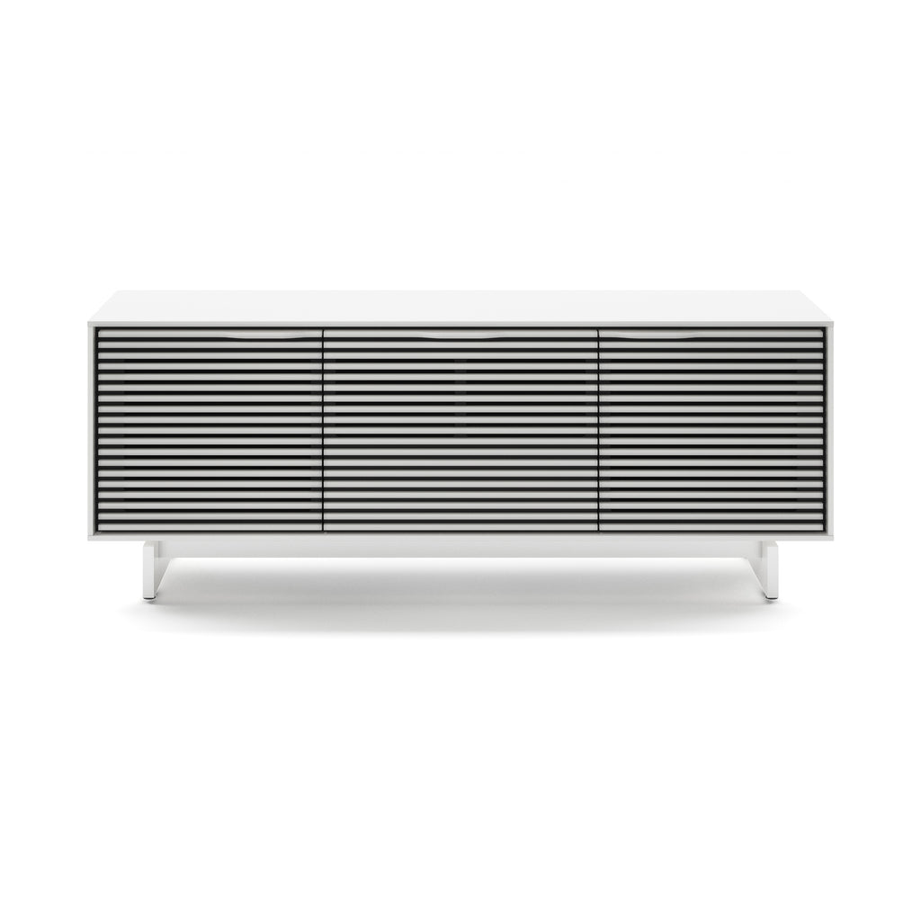 The Align 7477 TV console combines high functionality with premium style, featuring louvered doors that keep electronics neatly concealed but always accessible. This modern TV stand also includes an innovative center drawer with a full-width soundbar shelf and ample storage for movies, video games, and other media.
