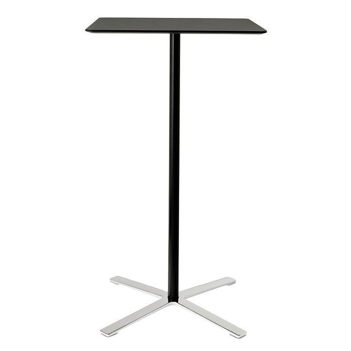 The Aline tables are a simple and elegant solution suitable in a variety of environments and applications. The round or square top tables available in black or white through-dyed, shock and break-proof panels made of HPL (High Pressure Laminate) with stylishly chamfered edges are combined with a flat bright chromium-plated, Aluminum star bases and upright. They are available in coffee, table and counter heights and create a seemless and refined impression.
