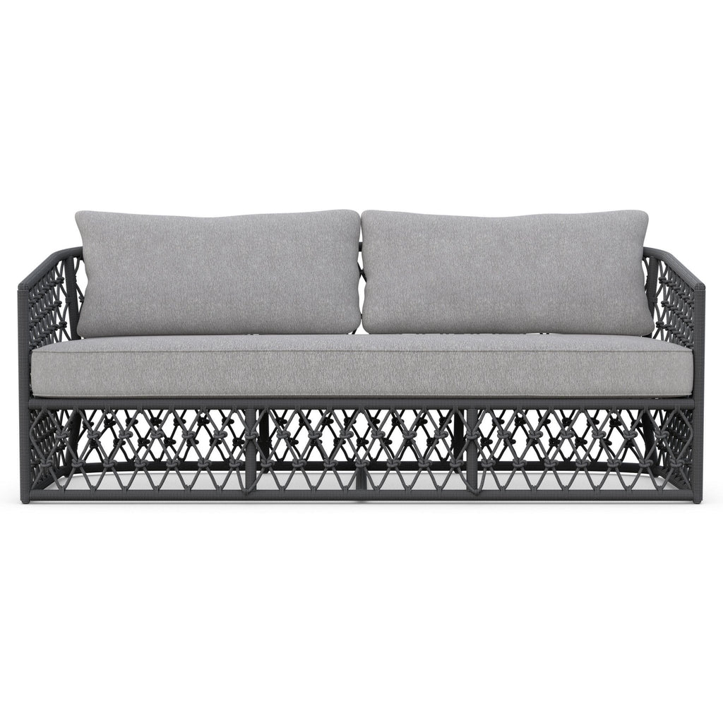 Bring coastal luxury to your outdoor patio or deck area with the Amelia 3-Seat Sofa from Azzurro Living. Featuring an aluminum frame covered with hand-knotted all-weather sand rope, this outdoor sofa is topped with high-density foam cushions covered in Solvita Performance Fabric to ensure comfort and function all season long. The matte white frame brings a neutral palette, easily blending with current decor or standing out amongst the green and blue of a waterfront entertaining space. Pair with other pieces from the Amelia line or choose a variety of pieces to create an outdoor seating look that is all your own.