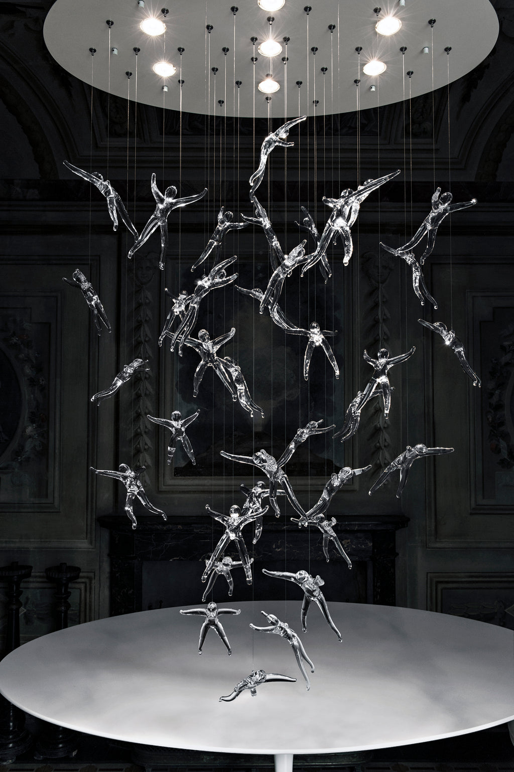 For his latest work for Terzani, Nigel Coates, well known for his unorthodox approach to design, has created an engaging, unique light. Customizable groups of hand made crystal (24% lead) “angels” are illuminated by halogen or led lamps. What caused these angels to fall from the heavens? It’s up to the viewers to decide. Either way, Angel Falls is sure to garner attention, and generate conversation, in any setting.