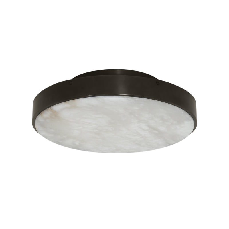 A celebration of noble materials and minimalist form, the Anvers Flush Mount from CTO Lighting is an elegant and impactful fixture. Inspired by the serene Flemish plains, this stunning, low-profile light features a translucent disc of finely honed alabaster. The beautiful stone, with its unique natural veining, is encased in a solid brass or bronze frame. When lit, the alabaster casts a warm, inviting ambient glow, bringing a sense of organic, understated luxury to any modern interior.