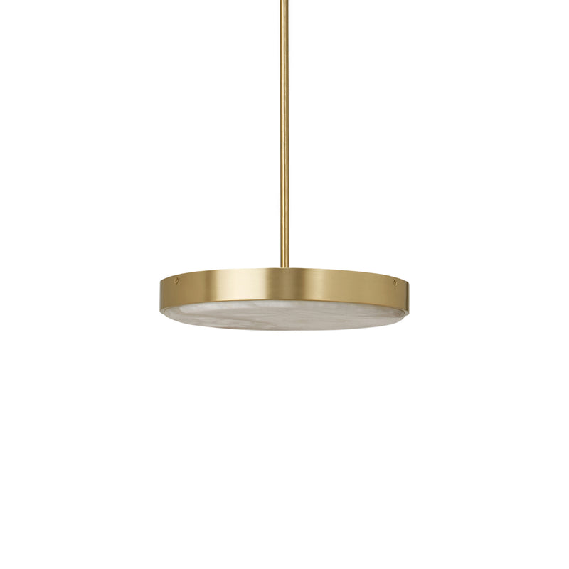 A celebration of noble materials and minimalist form, the Anvers Pendant Light from CTO Lighting is an elegant and decorative fixture. This sophisticated hanging light is defined by its beautiful alabaster stone shade, expertly carved to showcase the stone's unique, natural veining. Suspended by slender drop rods in a satin brass or bronze finish, the translucent alabaster casts a warm, inviting downwards illumination. A fusion of natural stone and refined metalwork, it’s a stunning centerpiece for any modern interior.