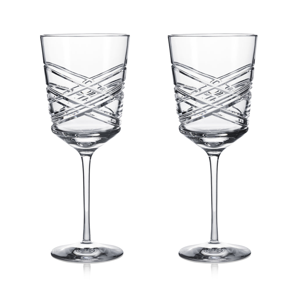 This beautiful set of 2 Aran Mastercraft Red Wine Glasses are inspired by the wild rugged beauty and traditions of the Aran Islands. Expertly hand-crafted in brilliant crystal by Waterford's Master Craftsmen at the House of Waterford, the generous bowl size is designed to enrich red wine aromas and is decorated with a series of bold intersecting crystal cuts which encircle the glass. As the linear cuts crisscross each other, they form diamond shapes which reference traditional Aran knitwear and create patterns that symbolise a fishing net capturing wealth and success. The expertise and skills of Waterford's highly trained Master Craftsmen are evident in this striking modern design.