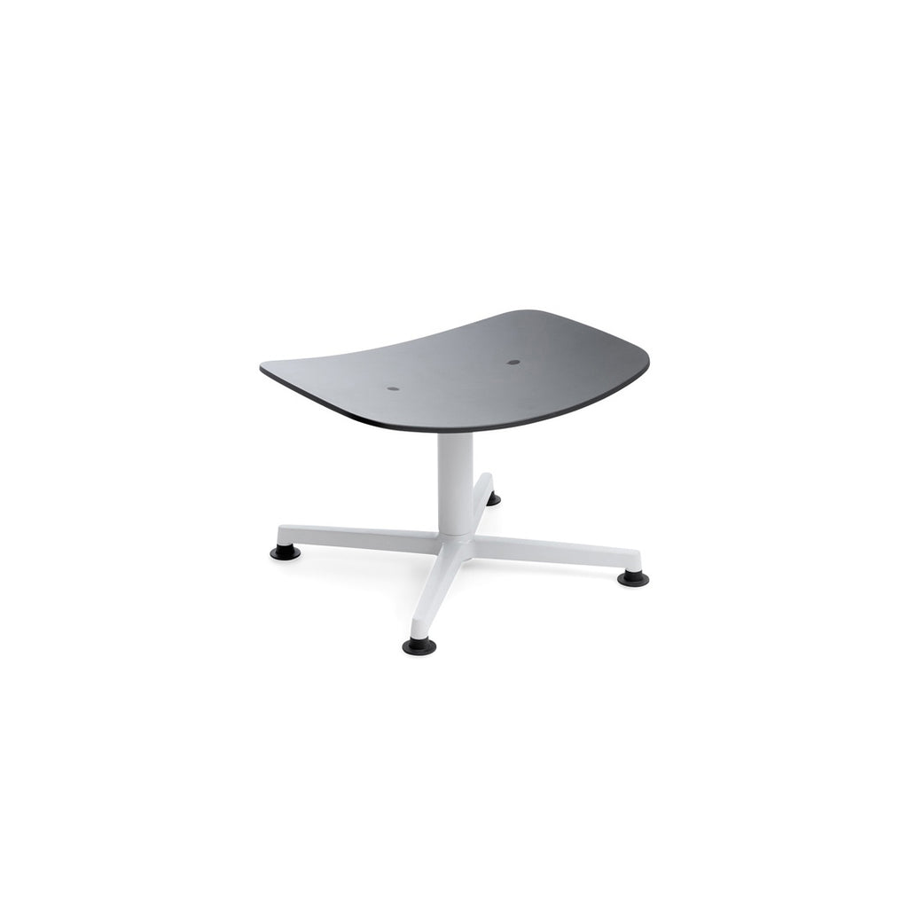 The ARBA Ottoman is a simple yet refined composition of two molded plywood elements, a cross-like structure of bent metal profiles and a die cast aluminum base. In its clarity, the composition communicates directly with the user. The ottoman has nothing to hide and yet it surprises us once we sit in it. Seat is perfectly shaped and positioned, the central spine adds the dynamic movement typical of flat sheet metal, to which the base adds a pleasant swivel function. The ottoman keeps the formal purity of an experimental prototype while it is a well-thought and precisely made industrial product that comes in a flat box and can be mounted with a few simple actions.
