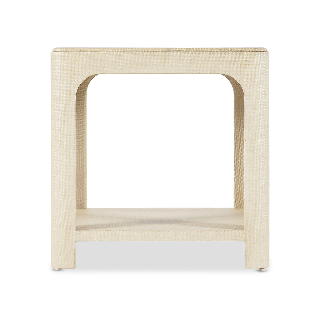 Add a touch of natural elegance to your living space with the Archives Raffia End Table from Hooker Furniture. Made with a Flax finish and wrapped in raffia, this square-shaped table features intricate woven-cane details and a fixed shelf for additional storage. Its refined design complements any room that balances relaxed comfort with sophisticated style.