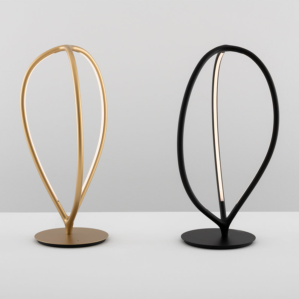 Arrival is a complete lamp family with dynamic, flowing shapes that sculpt light with delicate, graphic lines. Branching out from a central base, each model has three arms that form a soft, organic geometric shape through a profile that is both light and structured.