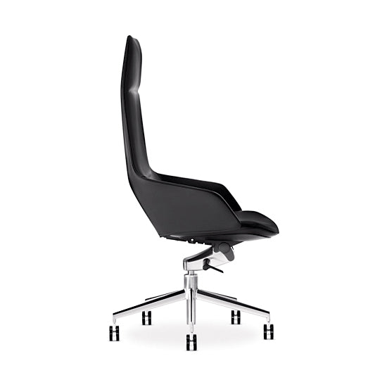 The Aston Direction Syncro Office Chair from Arper exudes sophistication and confidence with its streamlined form, ergonomic design, and strong aluminum five-star base. Delivering superior comfort and unparalleled performance, this executive chair stands out with its modern profile and aerodynamic lines. Its synchro mechanism and gas height adjustment ensure a personalized fit, while its polyurethane shell and leather upholstery provide a luxe look and feel.