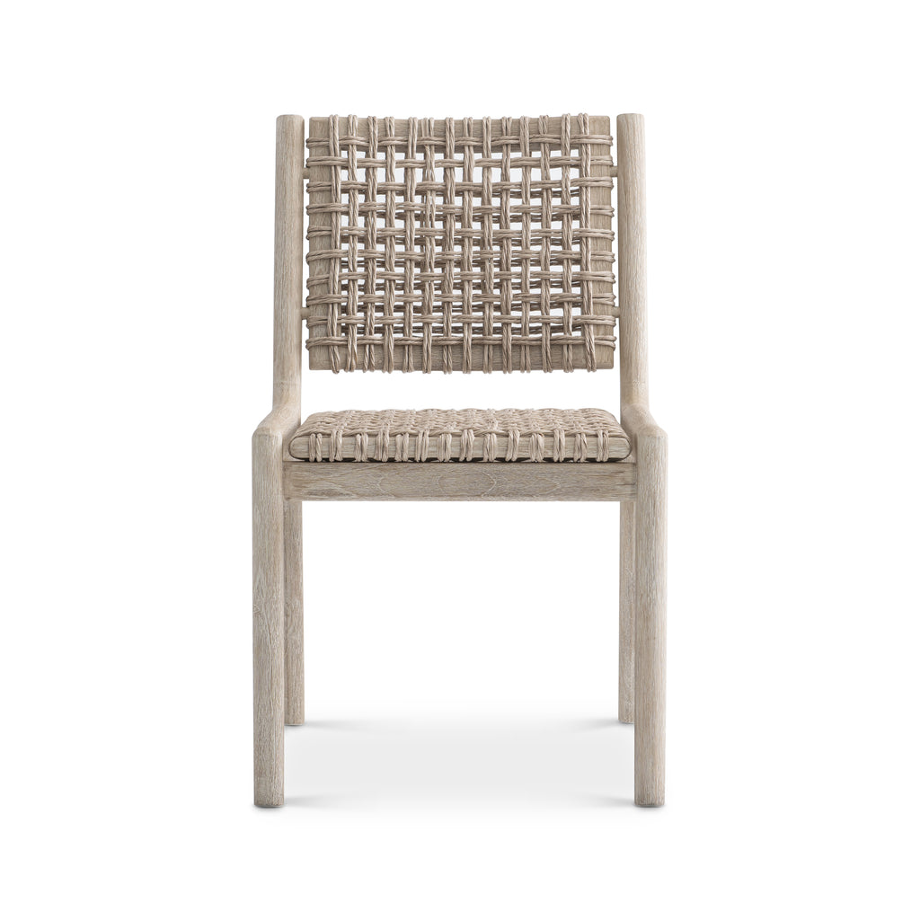 Elevate your outdoor entertaining space with the luxurious Atlas Outdoor Dining Side Chair from Bernhardt. Crafted with an all-weather wicker weave and sleek teak frame, this chair boasts a uniquely elegant style. Its distinctive design offers both style and durability, making it the perfect addition to any patio or garden.