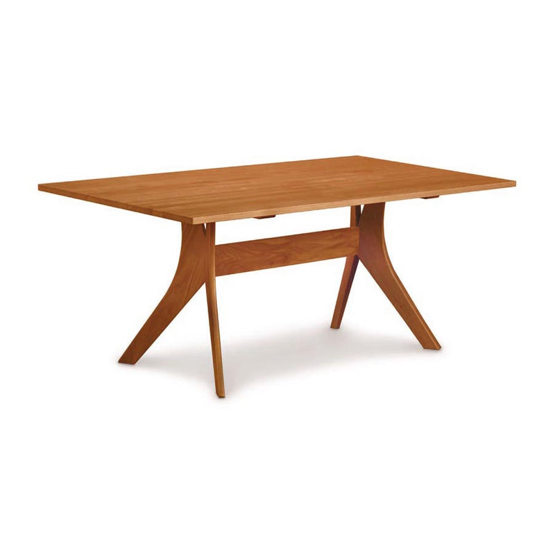 Made in Vermont by Copeland Furniture. The double X formation of the Audrey Dining Table trestle creates a state of dynamic tension giving the design a rigid base that provides diners with plenty of unobstructed leg room.