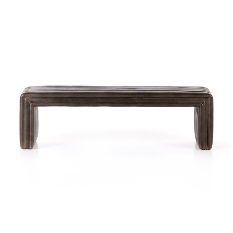 Introduce sophistication and modern flair to your entryway with the Augustine Bench from Four Hands. Boasting clean-cut lines, a streamlined U-shaped silhouette, and rounded corners, this bench offers a contemporary feel. With generous padding for comfort and support and a playfully channeled upholstery, the bench comfortably seats two while adding a luxurious and tasteful touch to your home.