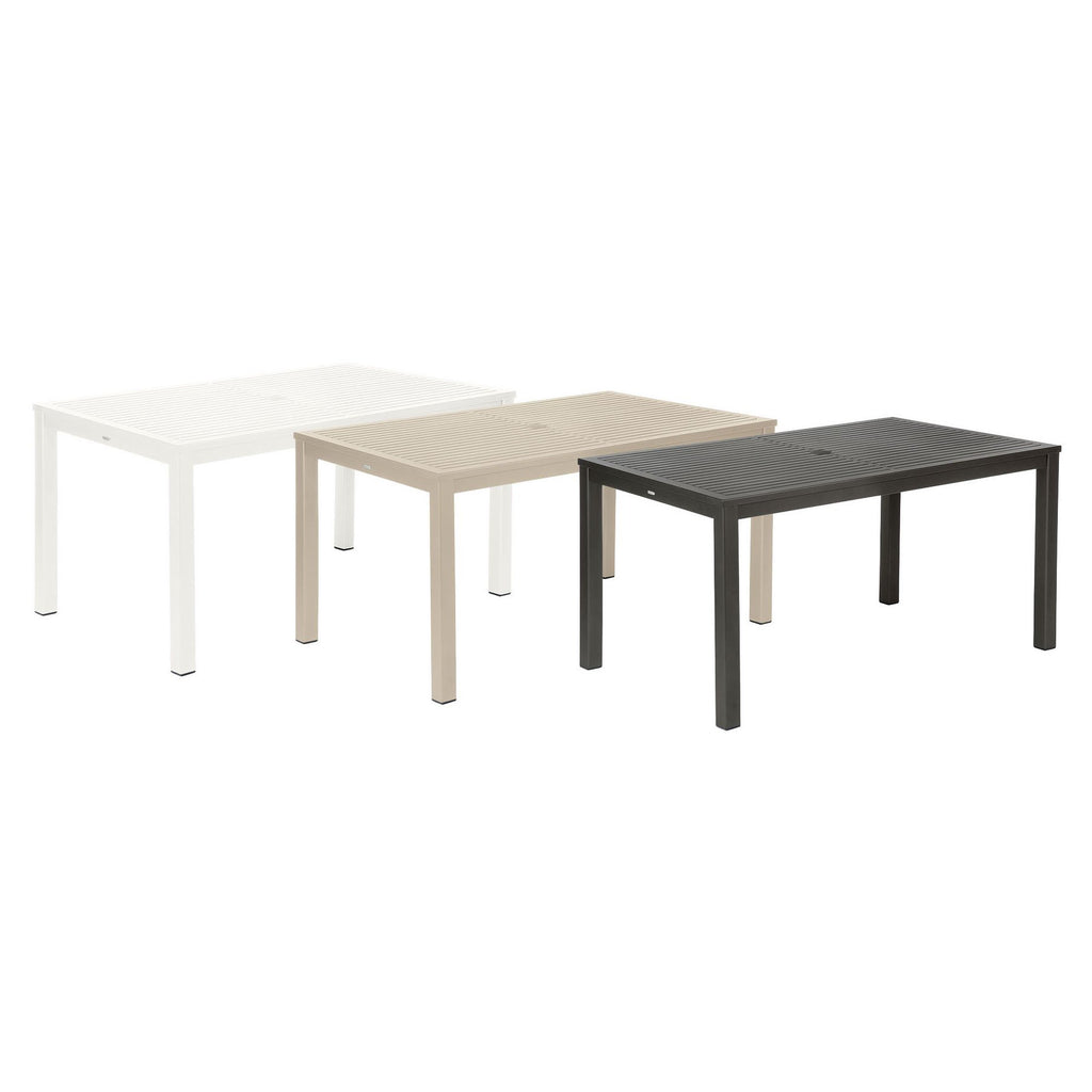 Elevate your outdoor dining experience with the Aura Aluminum Rectangular Dining Table from Barlow Tyrie. Featuring a sleek and minimalist design, this table is crafted with aluminum for a durable, yet visually light appearance . Its powder-coated finish and umbrella hole make it both stylish and practical. Choose from a variety of neutral modern colors to complement your outdoor space.