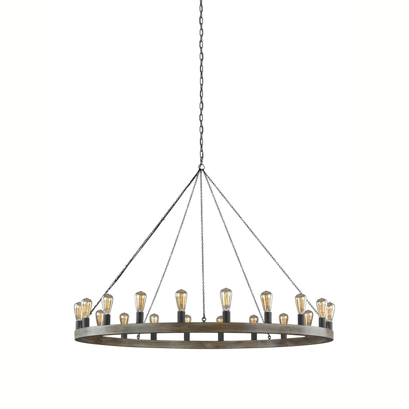 The Sean Lavin Avenir Chandelier is a minimalistic and inviting fixture dripping with Old World charm. Incorporating a two-toned, weathered oak wood frame and iron elements, including a chain and socket cups, this chandelier brings rustic illumination to your favorite dining areas, living room lounge spaces, or chic bedroom sleeping areas. Holding up to 20 lights, depending on your lighting needs, this lighting fixture will complement industrial- or rustic-style rooms in need of additional brightness.