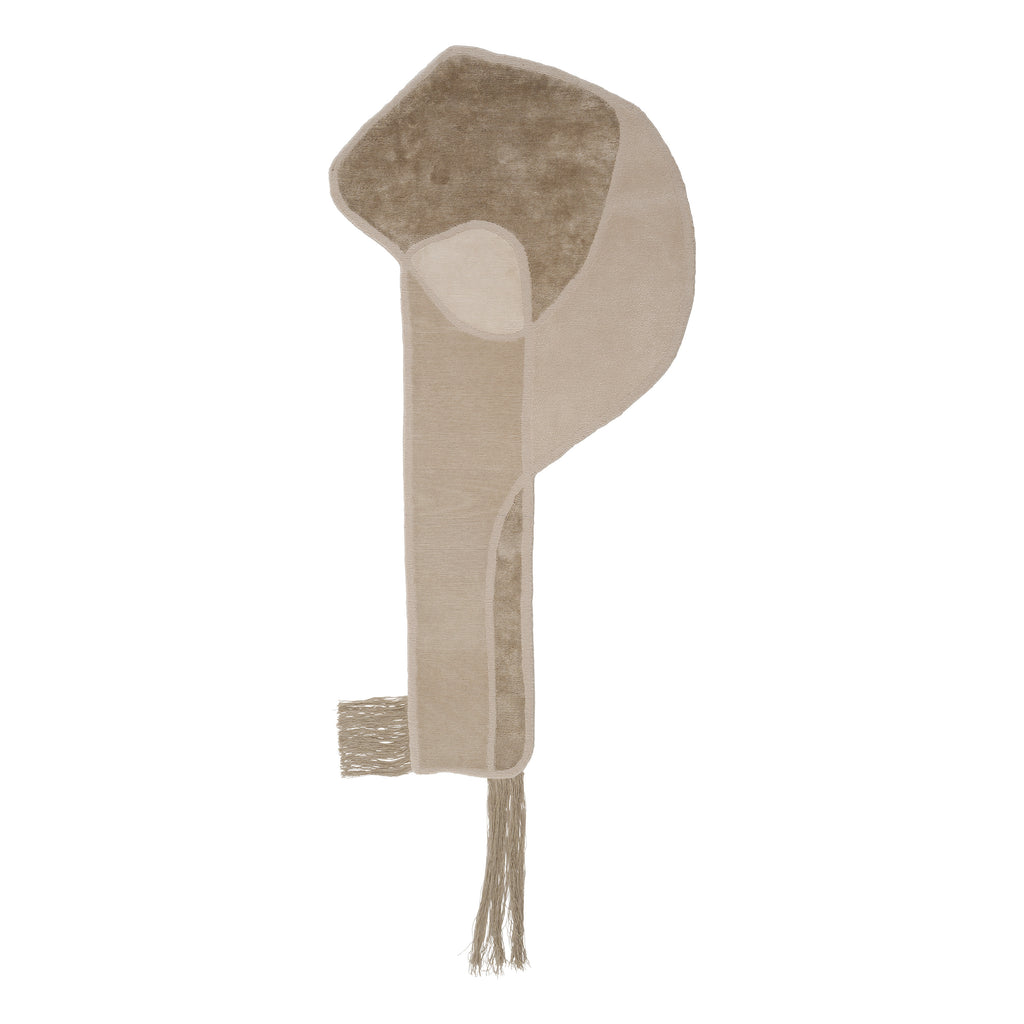 The interaction between the course of the lines and the surface materials creates a soft tactility that is beautifully framed by the organic outline and fringing details. The mix of wools from New Zealand and Argentina with the lustrous silk and rustic linen creates textural contrasts that are balanced by harmonious tones, creating an original and luxurious rug that elevates any interior.