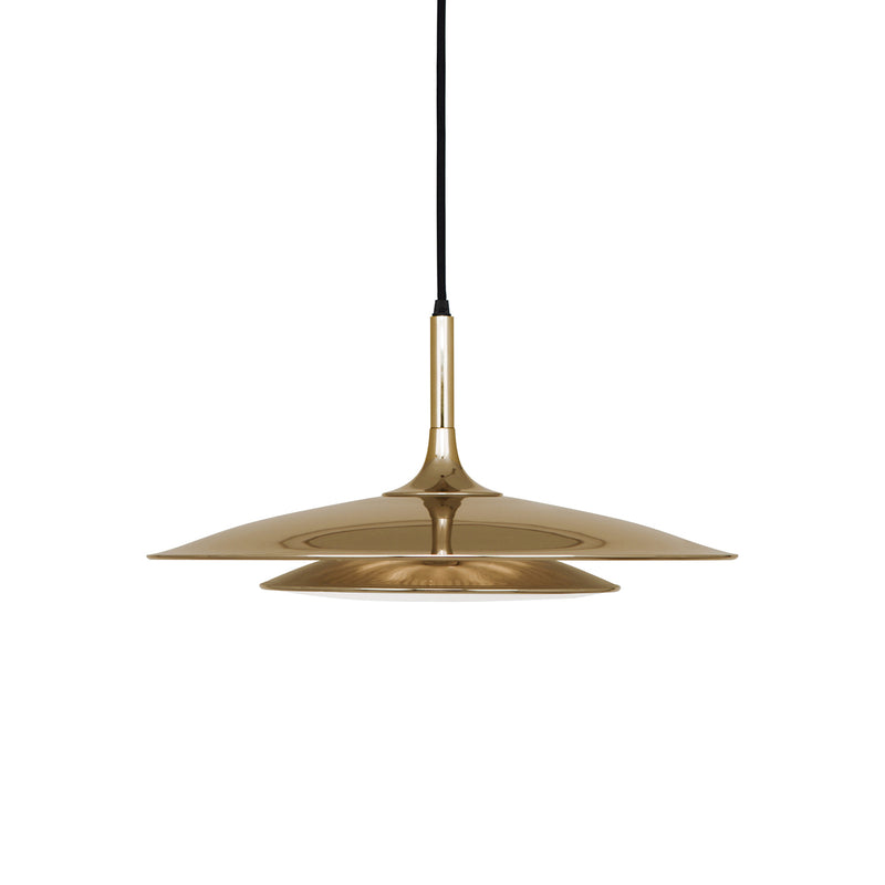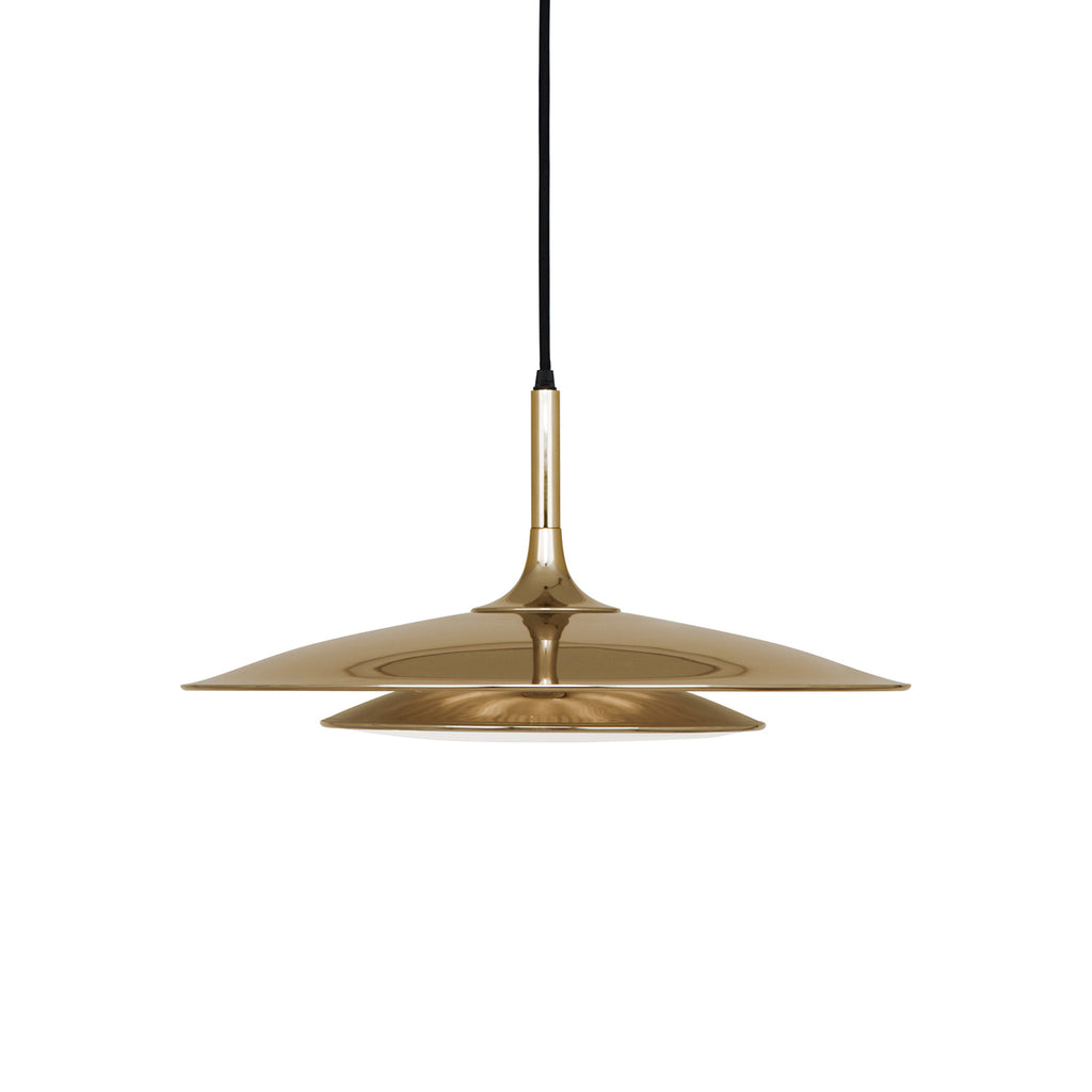 The Axiom Pendant Light from Robert Abbey blends mid-century Scandinavian style with retro-industrial charm through its sleek two-tiered metal shade. Featuring a frosted white cased glass diffuser, it delivers soft, glare-free illumination. The black fabric cord is field-cuttable, allowing for versatile arrangements—perfect for creating a sophisticated, cohesive look in any space.