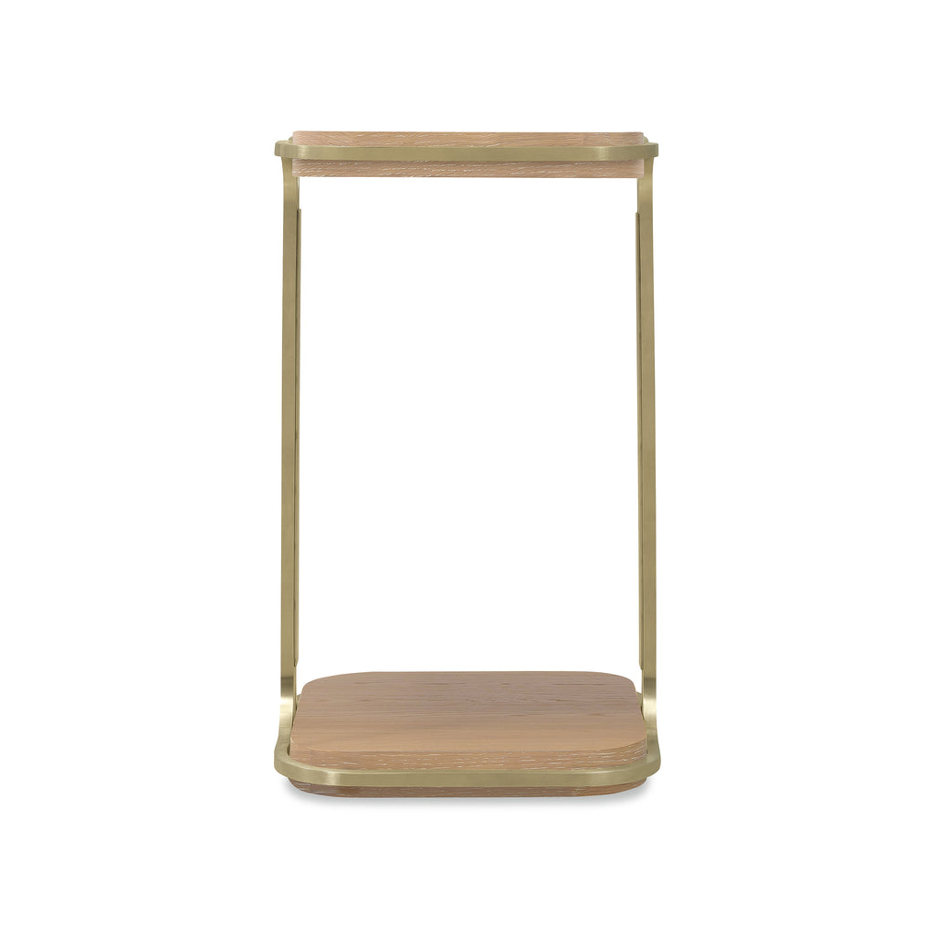 Elevate your living space with the Banyon Bay Accent Table from Hooker. Crafted with white oak solids and metal, this compact table boasts a light Desert Oak finish and brushed brass stainless steel legs for a modern yet natural feel. Its multi-step finishing process adds texture, while its versatile design effortlessly fits into any urban or coastal setting. Whether holding drinks or decorative items, this stylish table combines function and style with its convenient size and shape.