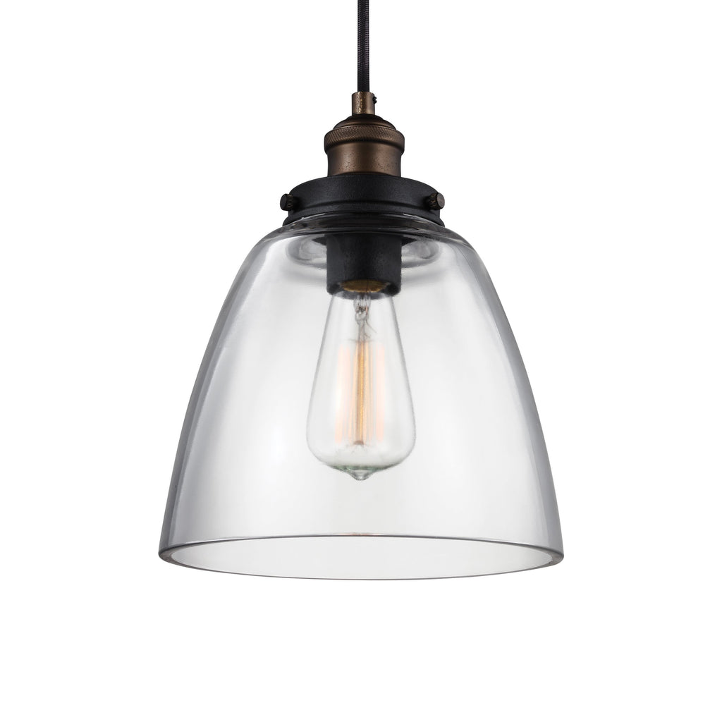 Elevate your living space with the Baskin Dome Pendant Light from Visual Comfort & Co. This striking light infuses a modern take on the classic antique socket pendant with its conical shape, crafted from clear thick glass and featuring unique finishes ranging from polished nickel to a combination of painted aged brass and dark weathered zinc. In this ultra-clean, sleek, and elegant design, the lamp styles (not included) become a dramatic focal point with warmth and sparkle, perfectly complementing all types of décor.