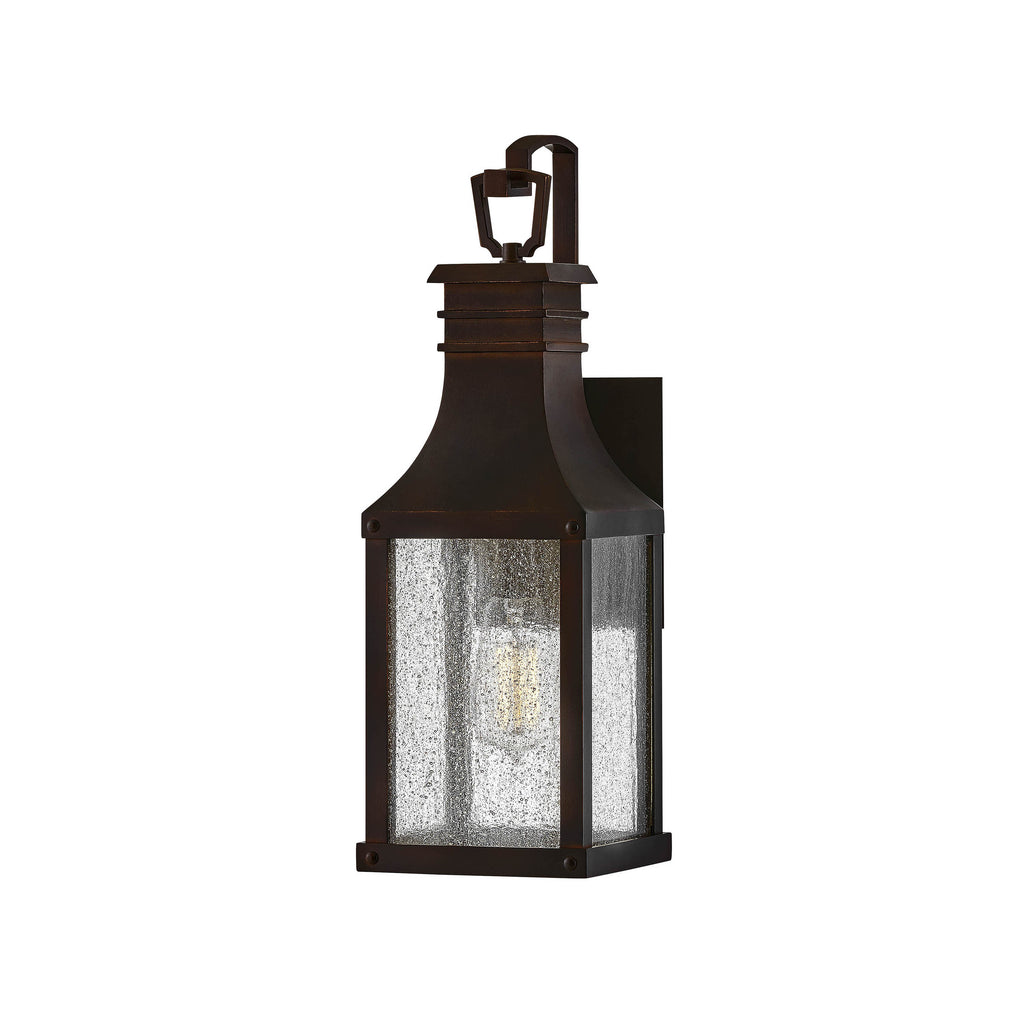 With its timeless aesthetic and Old World charm, the Beacon Hill Outdoor Wall Sconce from Hinkley is inspired by classic English lanterns. This traditional light features a durable aluminum frame designed to withstand the elements with enduring style. The clear, heavily seeded glass panels pay homage to its heritage inspiration, creating a beautiful, rain-streaked effect when lit. A fusion of classic design and robust construction, it’s a sophisticated and welcoming addition to any home exterior.