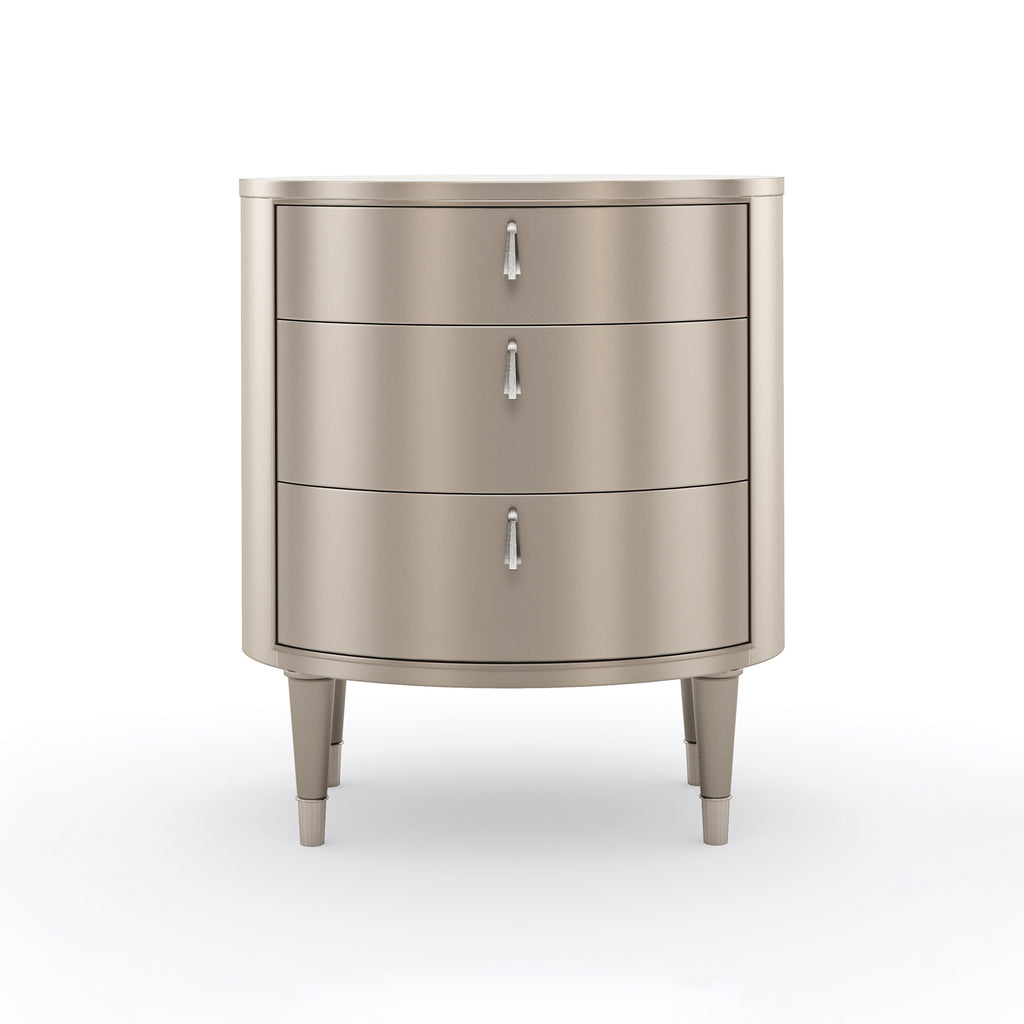 A statement in soft curves and subtle shimmer, the Bedside Beauty 3-Drawer Nightstand from Caracole adds a note of quiet glamour to bedroom interiors. This beautiful nightstand is defined by its unique oval shape, which is finished in an alluring Soft Silver Paint. The design is elevated by elongated drawer pulls, inspired by an Art Deco jewelry pendant, that draw the eye with their graceful, flowing form. A fusion of elegant form and refined detail, it’s a sophisticated and practical addition to any luxurious bedside.