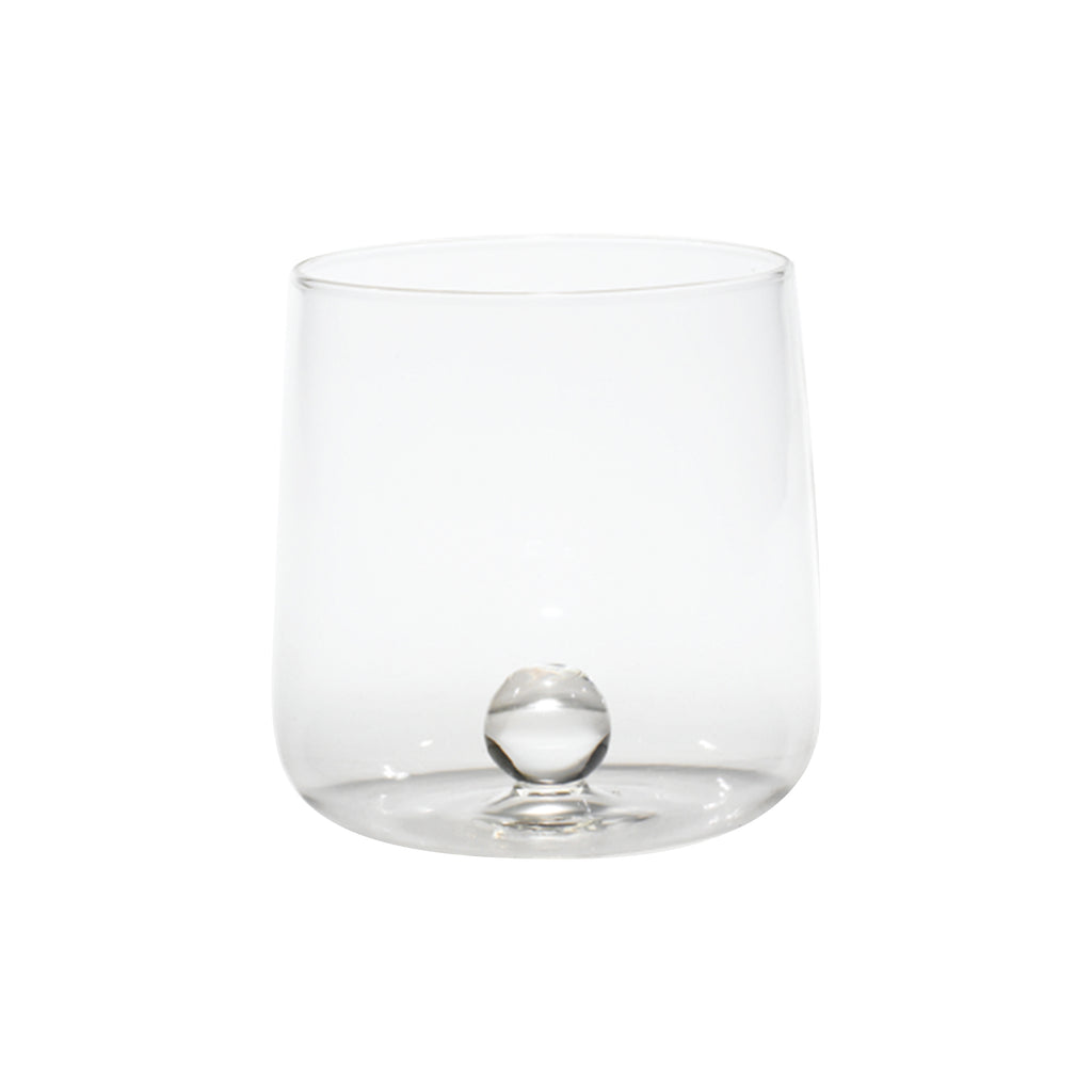 A simple glassware design that makes a lasting impression, the Bilia Tumbler Glass from Zafferano brings jewel-like beauty to any table setting. Handcrafted from borosilicate glass, these thermal shock safe glasses are the perfect size for your morning juice or an evening cocktail. Accented by a singular colored orb, this simple, yet sophisticated tumbler is ready to accent your barware collection with classically chic style.
