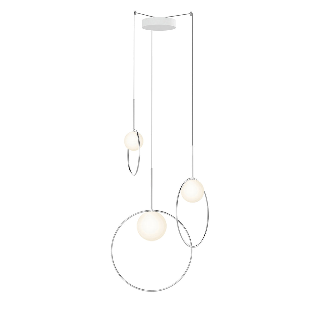 Bring new life to your space with the Bola Halo Chandelier from Pablo. Inspired by pendant jewelry, this fixture features adjustable stainless-steel rings and elegant opal glass orbs that emit a heavenly glow, creating movement and expression. Elevate your modern space with this sophisticated and exclusive chandelier.