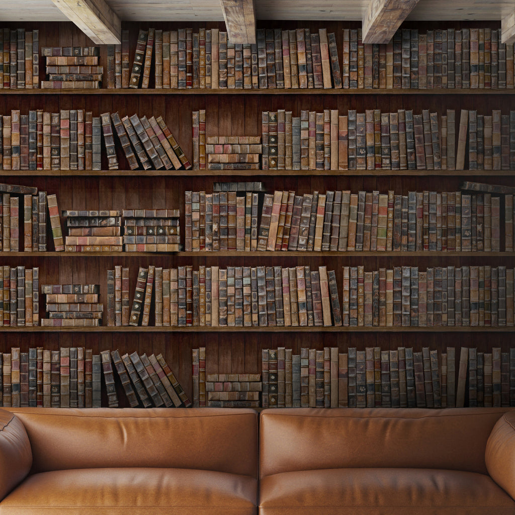 A classy collection of vintage books. The design is printed over 3 rolls.