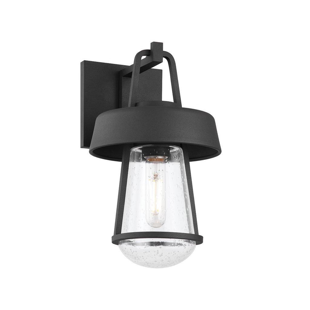 A clear glass shade rests within a Texture Black metal framework. The clean lines and smooth silhouette make a modern statement. Available as a one- or two-light option, Brady is a stylish way to add a warm glow to a variety of outdoor spaces.