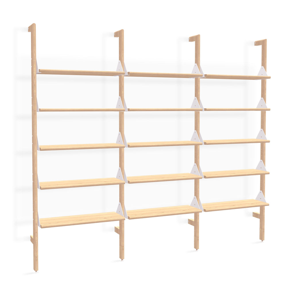 Additional add-on units are available to expand the length, and shelving is adjustable to create smaller or larger spaces in between the levels.