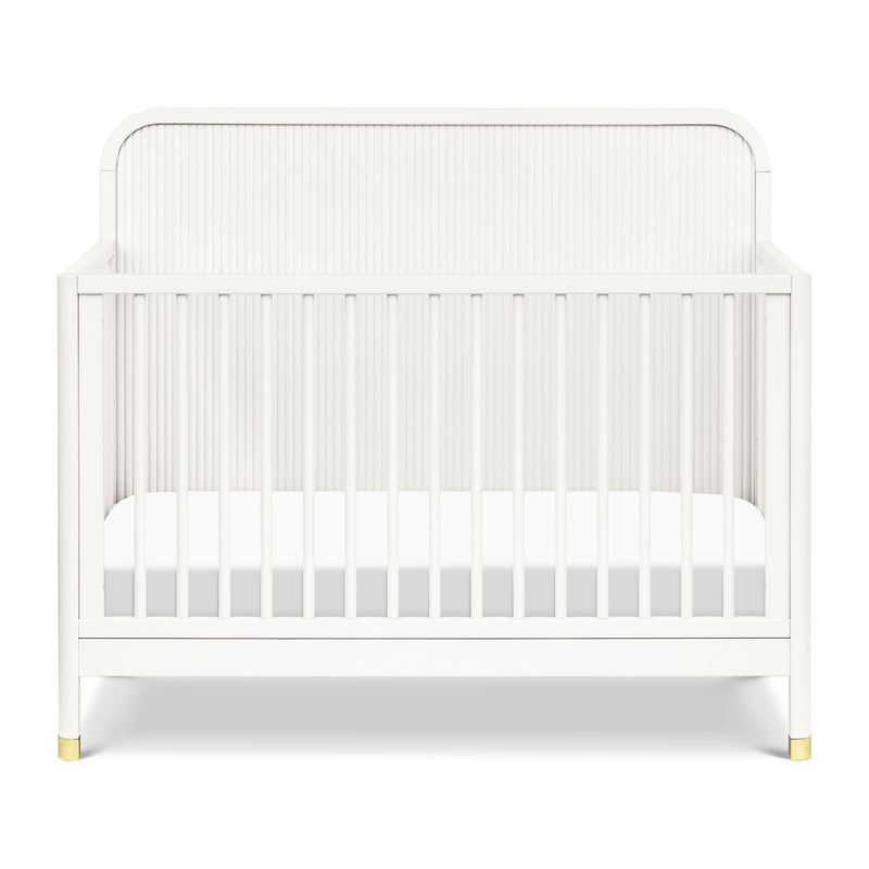 Transform your nursery into a stylish space with the Brimsley Tambour 4-in-1 Convertible Crib from Namesake. Crafted with a beautiful tambour design and elegant gold feet, this crib is not just a comfortable place for your little one, but also a stunning statement piece. Thanks to adjustable features, enjoy its timeless design and modern functionality for years to come.
