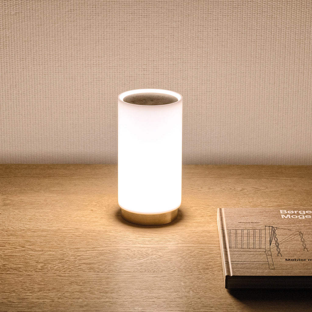 The Bugia LED Portable Table Lamp from Davide Groppi offers a stylishly minimalistic way to bring warmth and ambiance to any room. With its integrated LED light source and matte gold finial, its white methacrylate diffuser provides a soft, diffuse glow while the subtly ornate base adds a touch of sophistication.