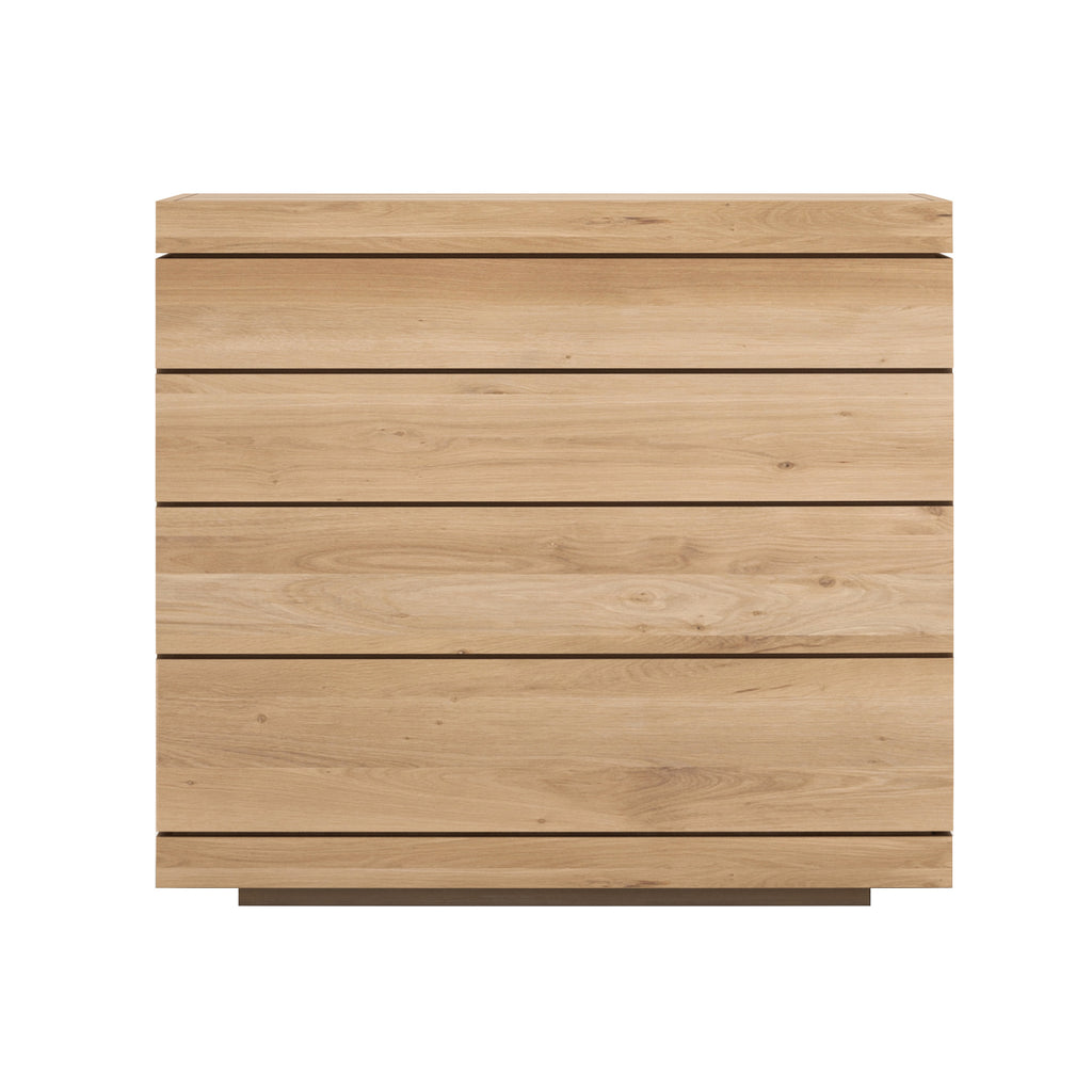 The Burger Chest of Drawers from Ethnicraft offers four push-open drawers for ample storage in your master bedroom or guest space. Crafted from solid oak, this timeless piece offers a simple and straight-forward design that will effortlessly mesh with almost any aesthetic. Top with a neutral table lamp and your favorite decor to craft a striking aesthetic that is all your own.