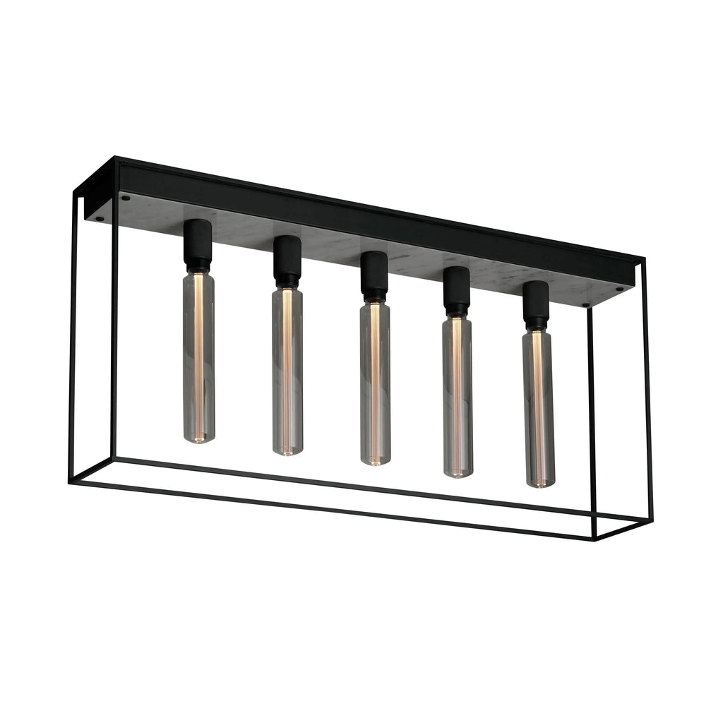 A linear expression of raw yet refined industrial design, the Caged 5.0 Linear Flush Mount from Buster + Punch brings a touch of London's edgy style to your ceiling. This unique light is defined by its strong, metal cage, which is beautifully contrasted by a polished marble back panel that adds a luxurious touch. The design is completed with signature details that are unmistakably Buster + Punch: cross-knurled lamp holders and coin screws. A fusion of raw materials and meticulous, tactile detailing, it’s a sophisticated and unconventional lighting choice for a modern hallway, kitchen, or living space.
