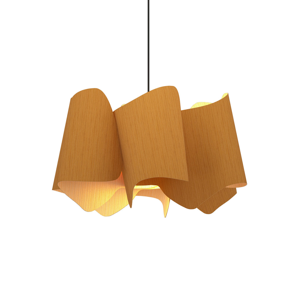 The Camila Pendant Light from Bruck Lighting exhibits a sustainable wood shade to add a natural aesthetic to your space. Colorful swirls of thin wood veneer create a visual statement highlighted by the warm glow of ambient light. The authentic wood grain is unique to each piece and every fixture’s character is nothing short of livable art. Station above a kitchen countertop or dining room table for a sculptural accent that is equal parts grounding and effervescent.