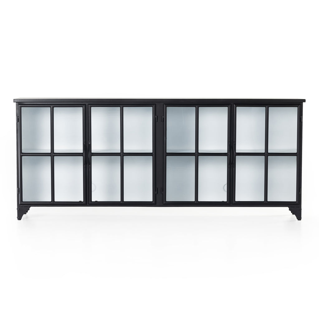The Camila Sideboard from Four Hands brings a touch of modern luxury to your interior space with its distinctive blend of industrial iron and a contemporary white interior. Its distressed black iron frame adds a unique touch of character, while the windowpane doors and ample interior shelving provide maximum versatility for storing and displaying your personal items.
