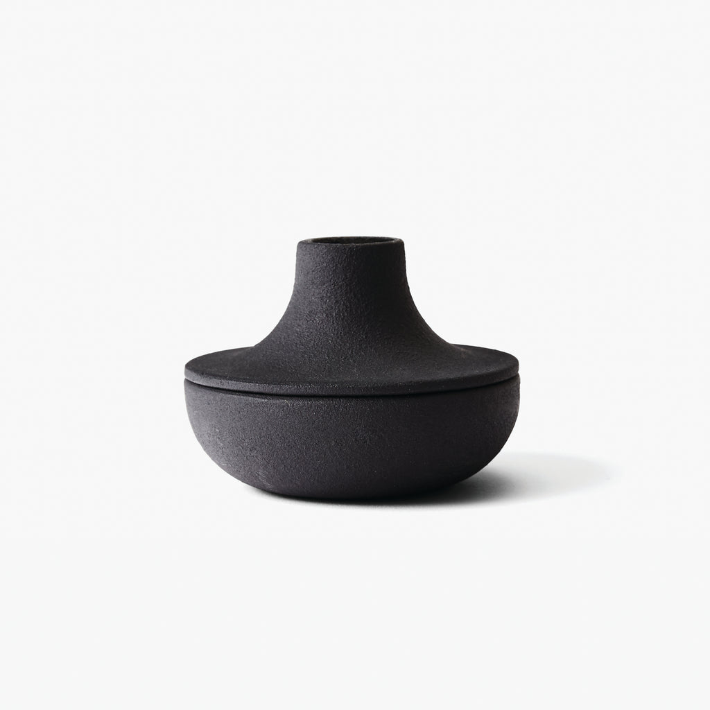 At first sight, a simple cast-iron candle holder, opens to reveal space for a tealight or incense stick - a three-in-one accent for your tabletop. Light a strike-anywhere match off the surface and burn one illumination - or all three.