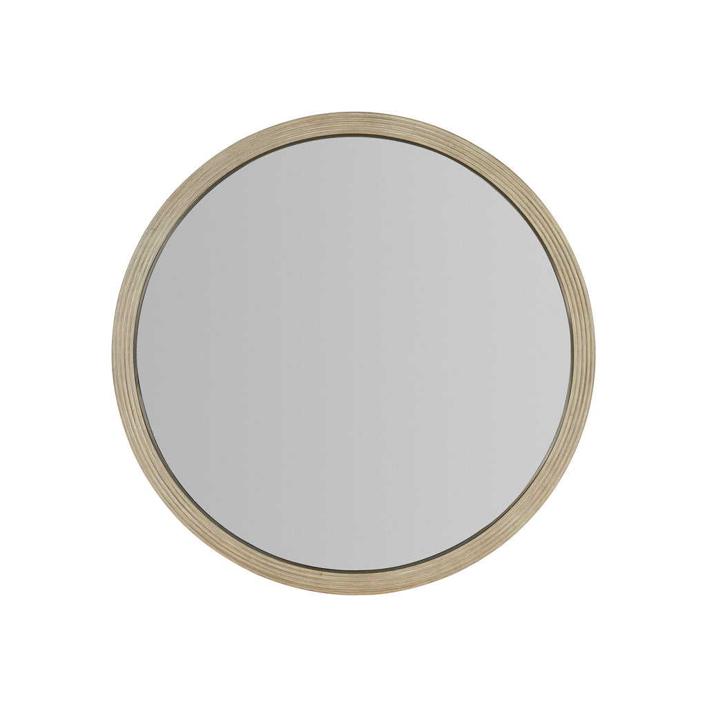 Transform your space into a peaceful oasis with the Cascade Mirror from Hooker Furniture. This round mirror in a neutral color palette adds a touch of tranquility with its oak veneers and reeded trim. The soft taupe finish with dry brushing exudes a sense of calm and serenity. Bring a light and airy feel to any room with this sleek and simple design.