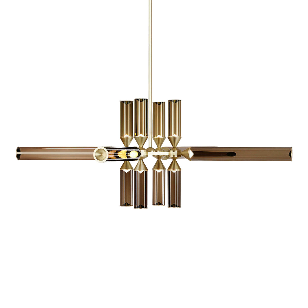 Elevate your space with the Castle 12-Light LED Chandelier from Roll & Hill. Inspired by the strategic movements of chess, each glass piece extends horizontally or vertically, reminiscent of a rook's movement. Sparkling light and architectural design create a regal atmosphere, perfect for a sophisticated and exclusive ambiance.