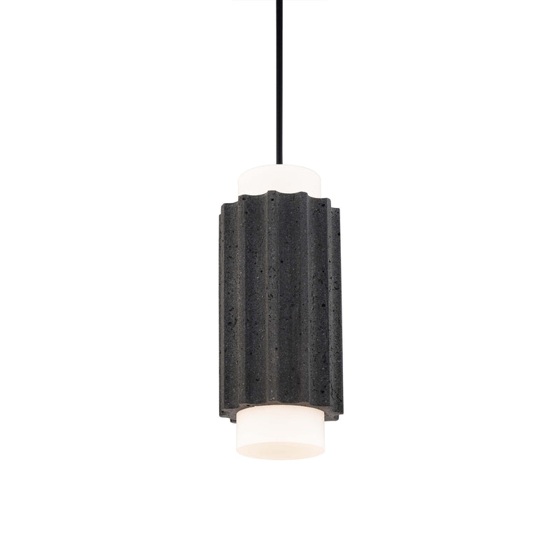 Prized for its subtle richness and texture, the Caviar LED Pendant Light from Modern Forms is a study in natural, sculptural beauty. This elegant pendant features an etched opal glass shade surrounded by a beautiful fluted column of natural stone. The unique design offers bi-directional light, with color-temperature-selectable LEDs casting a soft glow from both the top and bottom. The natural variations in the stone's veining make each piece a one-of-a-kind, sophisticated and luxurious centerpiece.