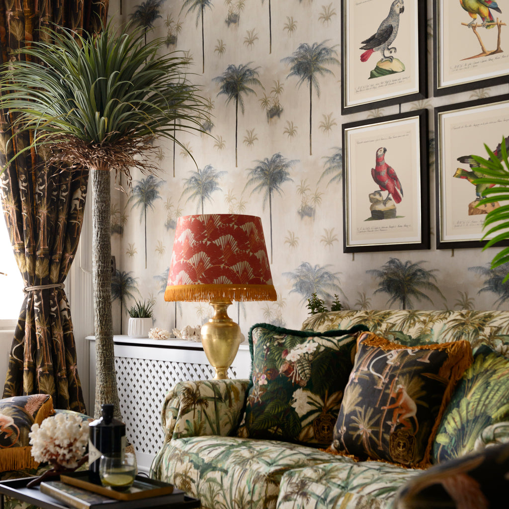 Taking its name from the famous resort island in the Caribbeans, CAYO LARGO is a light color scheme design with large scale painted palm tress on a washed background reminding of the beautiful Cuban sunsets. An exotic style wallpaper with soft tones and tropical elements creating a very Cuban atmosphere.