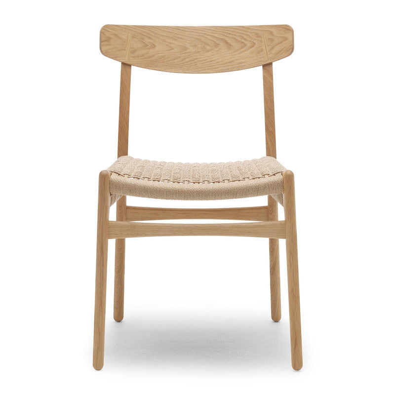 Designed by Hans J. Wegner, the CH23 Dining Chair from Carl Hansen is a stunning combination of form and function. From the curved contours of the legs to the beautiful grain of the wood, each aspect of this timeless piece is carefully crafted to showcase Wegner's minimalist style. Arched legs provide an elegant stance, the curved backrest is supportive, and the woven seat gives an airy feel.