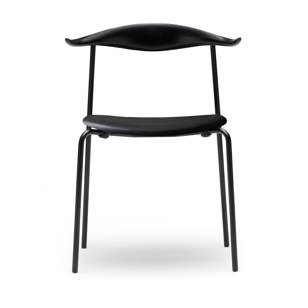 The innovative style created for the CH88P Dining Chair is a unique exploration of materials by designer Hans J. Wegner. The smooth wood finish has an architectural cut back that creates a comfortable feel connecting to a steel frame and upholstered seat. The combined materials have a Scandinavian modern tone while fusing textures for an inviting look.