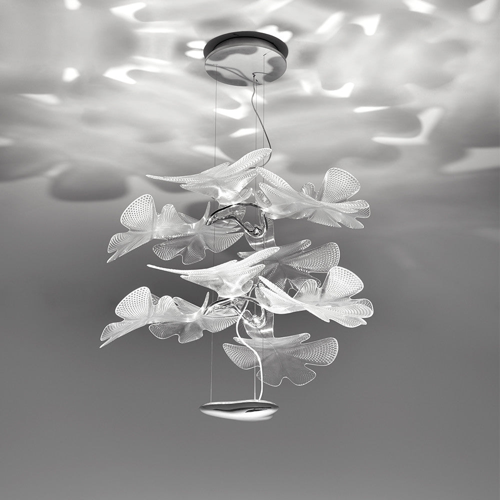 - Available in Polished Aluminum lighting unit with Transparent leaves